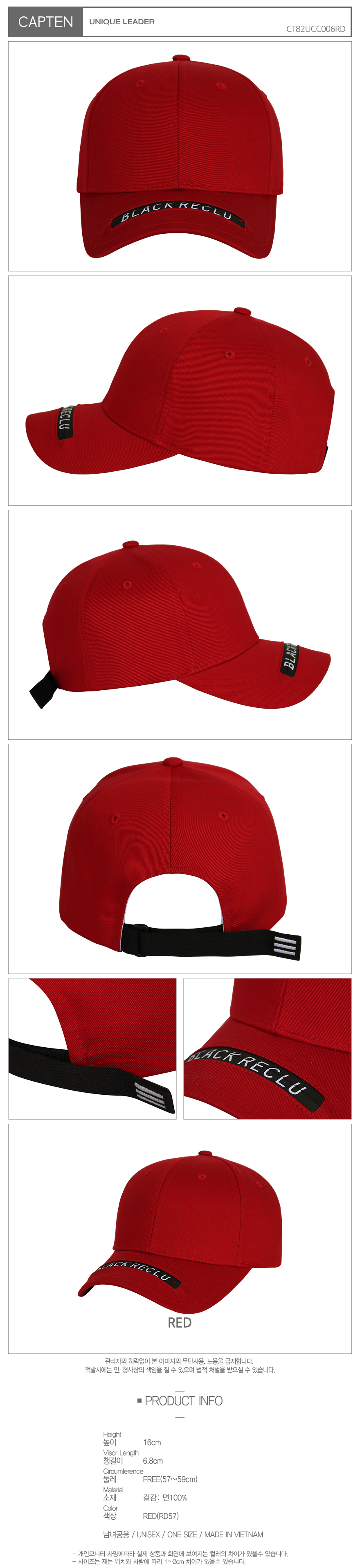 사이즈높이: 16cm, 챙길이: 6.8cm, 둘레: Free(57~59cm)
