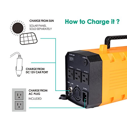 7lb 500W 288WH Backup Portable Generator Solar Power Source Power Inverter UPS 26000mah Li-on Battery Power Supply Powerhouse Charged by Solar/AC Outlet/Cars with 3 AC & 4 DC 12V & 4 USB Ports
