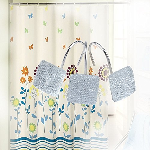 Rolling Shower Curtain Rings - Set of 12 twinkle diamond decorative Hooks