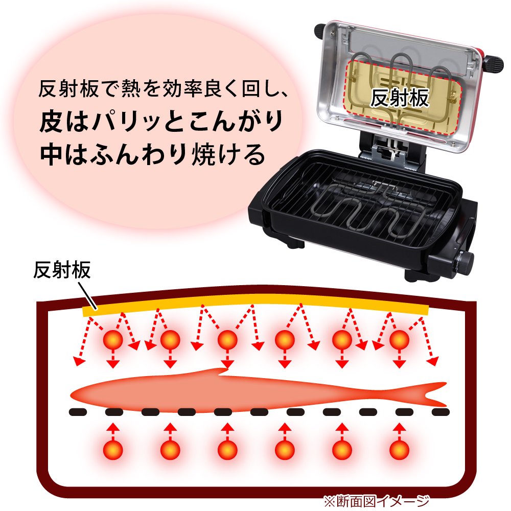 Turning inside out With unnecessary double-sided grill, grill net can adjust the height of 2 stages.