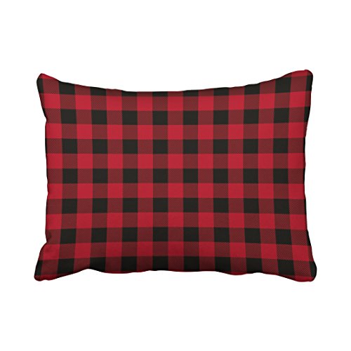 Emvency Throw Pillow Covers Red Black Buffalo Plaid Pattern Decor Pillowcases 20 x 26 Inch Standanrd Size Rectangle Pillow Cover Cushion Home Decorative Pillowcase Hidden Zipper