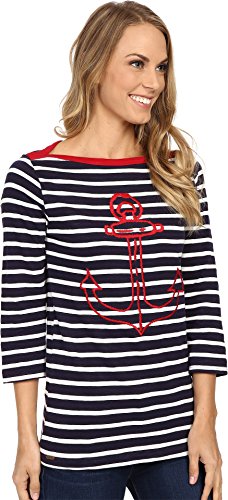 Boat neckline boasts a contrasting trim. Three-quarter sleeve design. Straight hemline. 100% cotton. Machine wash cold, tumble dry low. Imported.