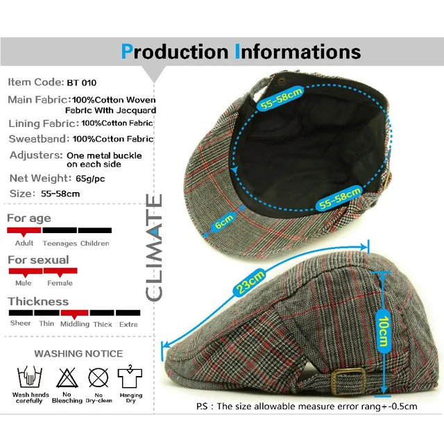 크기가 베레모 캡: 55-58 센치메터. 포장 상세