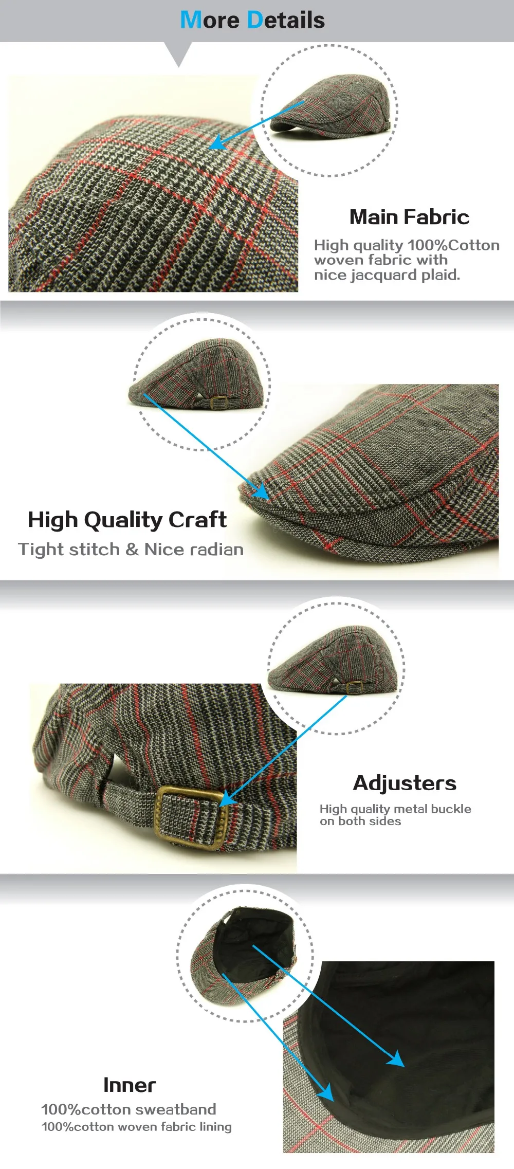 | [해외]Climate 새로운 가을 봄 남성 회색 격자 무늬 베레모 평면 패션 복고풍 캐주얼 화가 모자 그리드 성인 남녀 조정 |