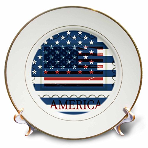 3dRose cp_56321_1 American Flag Stamp USA Patriotic Porcelain Plate, 8-Inch