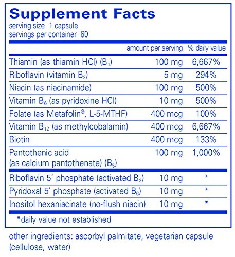 -. Binding : Health and Beauty -. Brand : Pure Encapsulations -. Label : Pure Encapsulations -. Manufacturer : Pure Encapsulations -. ProductGroup : Health and Beauty -. ProductTypeName : HEALTH_PERSONAL_CARE -. Publisher : Pure Encapsulations -. Studio : Pure Encapsulations -. Title : Pure Encapsulations - B-Complex Plus 60 VegiCaps