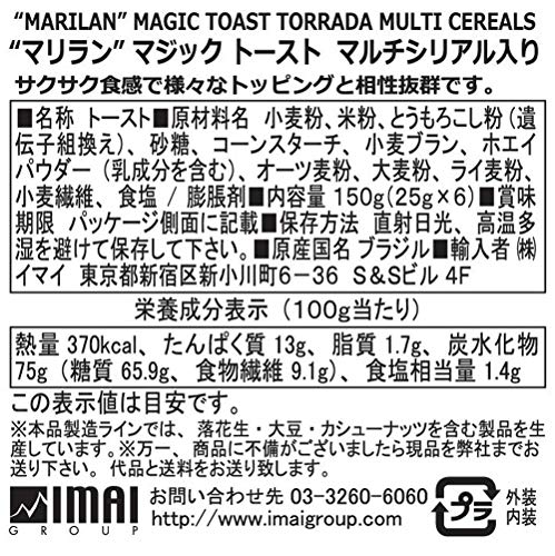 原材料:小麦粉、米粉、とうもろこし粉(遺伝子組み換え)、砂糖、コーンスターチ、小麦ブラン、ホエイパウダー(乳成分を含む)、オーツ麦粉、大麦粉、ライ麦粉、小麦繊維、食塩/膨張剤