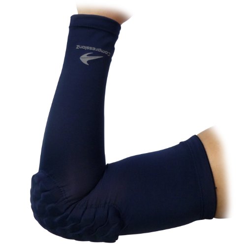 Padded Arm Sleeves (1 Pair/ Navy - L) Men, Women & Youth Compression Basketball Shooter Sleeve - Offers Best Elbow Warmers & Forearm Protection for Football, Volleyball & Athletic Contact Sports