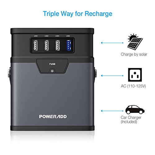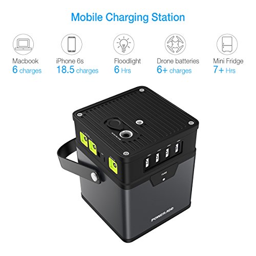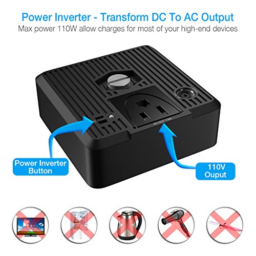 Alternate Power Supply - Serves as a backup power for outdoor, camping, reading, emergency lightning, field work, SOS light feature can be active if necessary, perfect for phones, laptops, TVs and even mini fridges. ChargerCenter features triple output modes: a 12V car socket; an 110V AC outlet (for devices up to 100W) and 3 fast-charging USB ports with another Quick Charge output.
