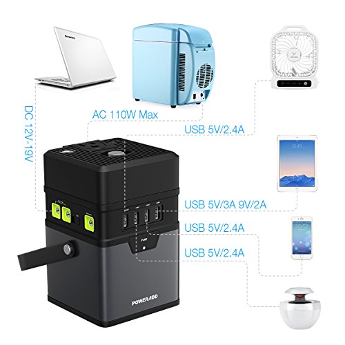 Poweradd ChargerCenter, Compact 185Wh/50000mAh Portable Generator, Power Source (DC 5V/12V/19V) with AC Power Inverter (115V/100W) for Smartphone, iPad, Tablet, Laptop, Fan, Mini Fridge and More