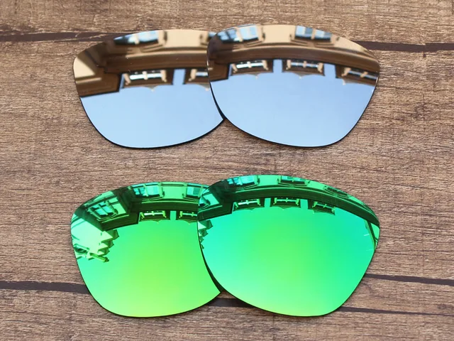 [해외] 크롬 실버 & 녹색 2 쌍 미러 편광 교체 렌즈 Frogskins 선글라스 프레임 100% UVA & UVB 보호