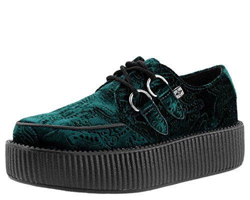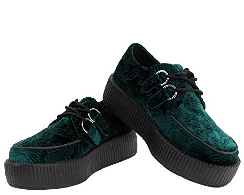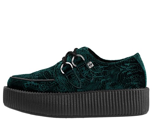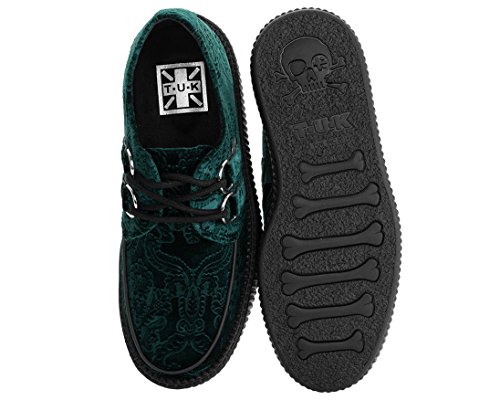 Studio : T.U.K. Publisher : T.U.K. Binding : Apparel Product Description Why fit in when you can stand out these cool emerald green floral burnout viva mondo creepers will do just the trick. featuring t.u.k.'s new lightweight, durable and more flexible eva and rubber sole, velvet upper, silver metal d-rings and cushioned insole for added comfort. 0