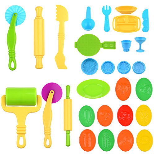 Dough Tools Kit: 29 pieces in one set (Silverware, Food Molds, and Dough Tools). All of them are assorted color.