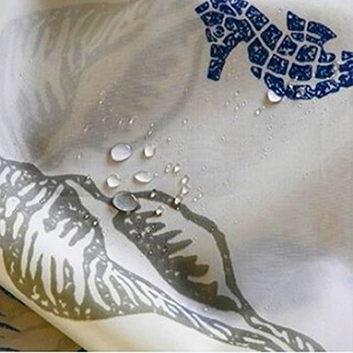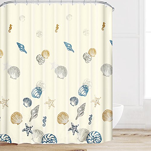 Eforcurtain Ocean Pattern Bathroom Shower Curtain Fabric with Hooks, Starfish Pattern Waterproof Mould-proof Bath Curtain for Kids, 72-Inch By 72-Inch, Yellowish/Beige