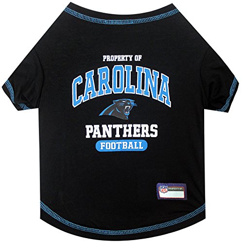Let your pet show off your team spirit with this NFL licensed pet tee shirt! This tee shirt is made of 100% cotton and designed with an easy fit stretch front panel and band bottom to fit your pet with maximum comfort. Contrast color sporty overlock stitching is detailed on the neck, sleeves and bottom. There is a dimensional one color puff screen in the team name and logo. An NFL woven jock tag is sewn on to the bottom of the tee giving it added value.