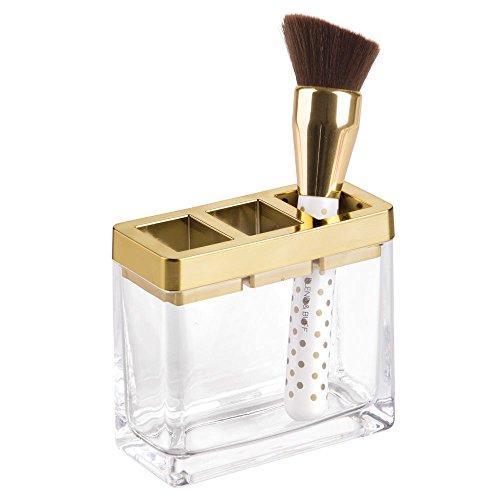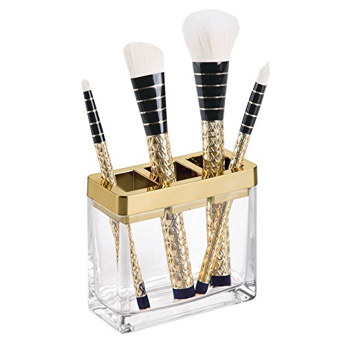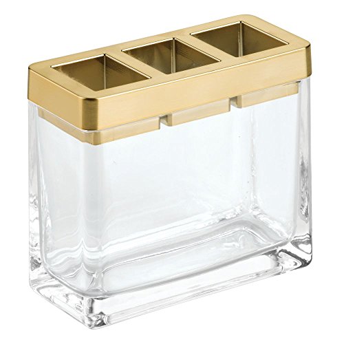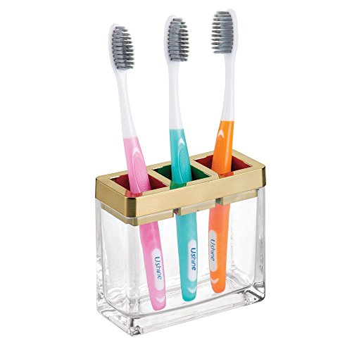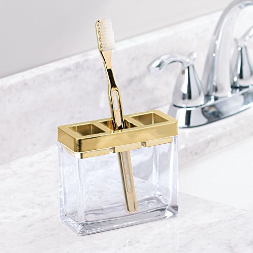 InterDesign Toothbrush Holder Stand for Bathroom Vanity or Countertop – Clear/Soft Brass