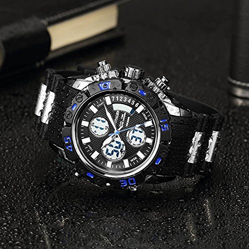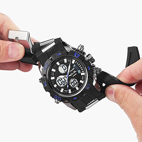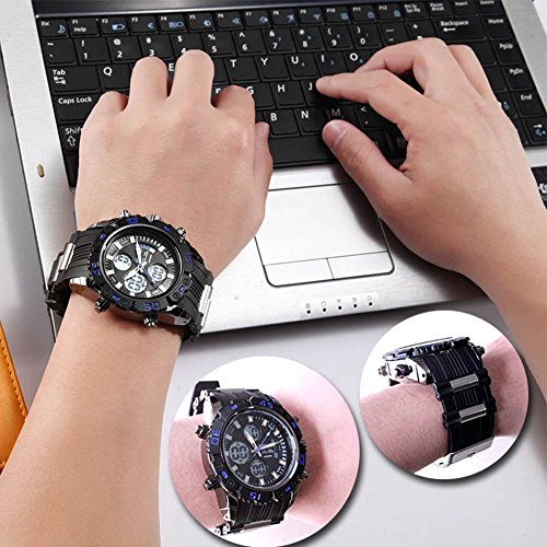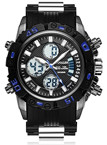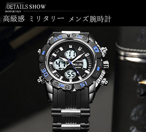 원본상품명: SPOTALEN スポ?ツウォッチ メンズ ファッション 高級感 腕時計 アナデジ ledライト 多機能 シリコ?ンバンド ST009(ブラック&ブル?)