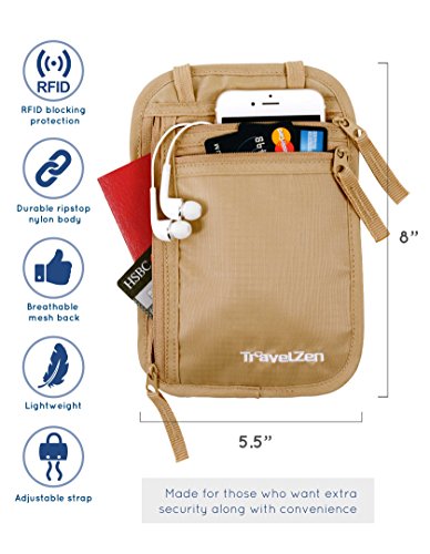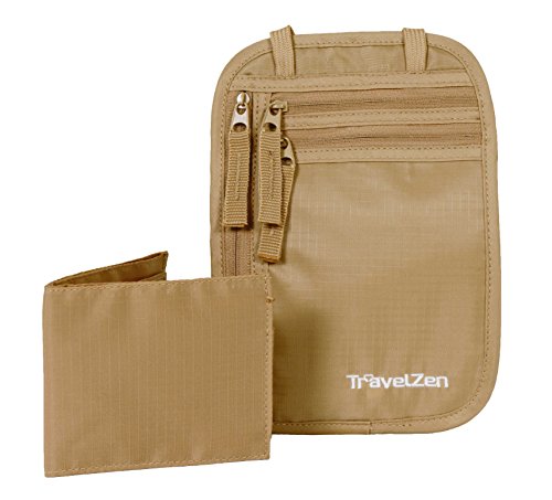 TravelZen Security Wallet, A RFID Blocking Neck Passport Pouch plus Dummy Wallet. Smart monotone colours and extra secure for riskier travels.