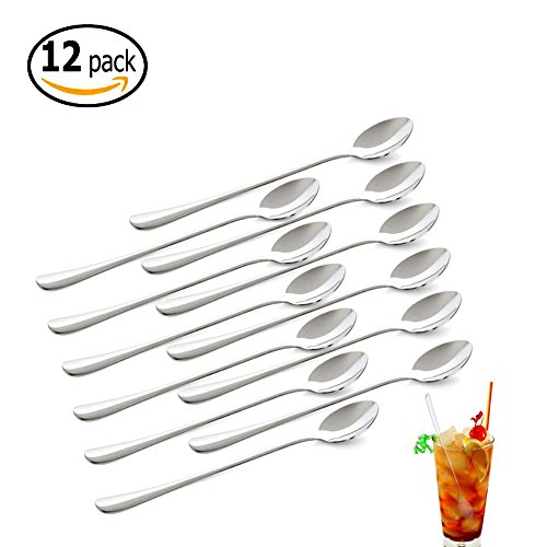 CHESEY Long Handle Ice Tea Spoons Set of 12 Stainless Steel for Ice Cream, Tea, Coffee, or Dessert, 7 and 1/2 inches