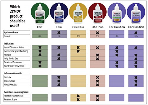 Zymox Otic Enzymatic Solution Hydrocortisone Free for dogs and cats treats the external ear for acute and chronic inflammation caused by bacterial viral and yeast infections. Some factors that may contribute to possible ear infections include: excessive hair a suppressed immune system and excessive skin folds in the ear.Feature