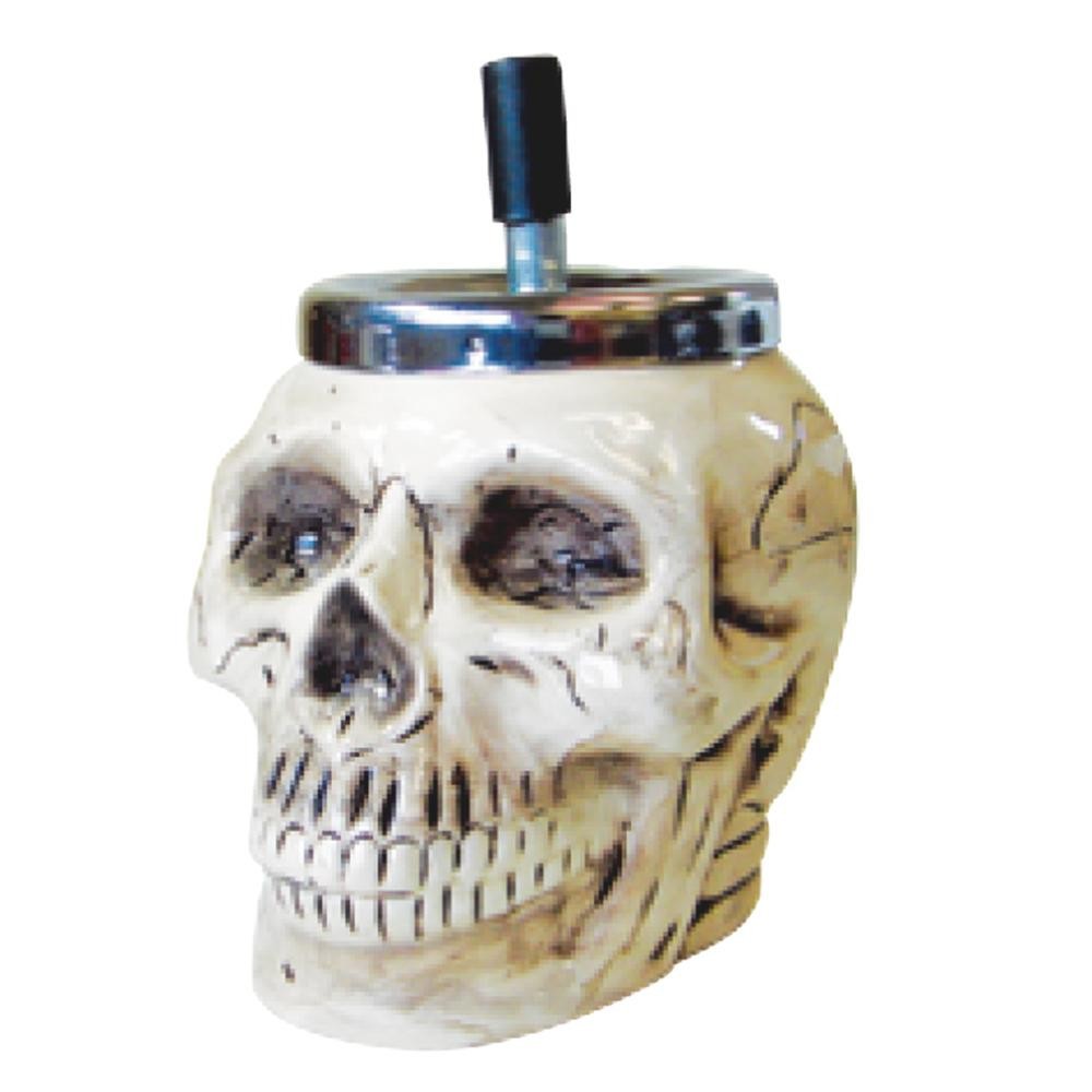 fk094igrjs上からハンドルを押すと、回転しながら下がり、灰や吸殻を自動的に中に落とす事が可能です サイズ H180×W120×D154mm 個装サイズ:19×13×16cm 重量 個装重量:600g 素材・材質 陶器、スチール 製造国 中国 スカル型の灰皿です 上からハンドルを押すと、回転しながら下がり、灰や吸殻を自動的に中に落とす事が可能です