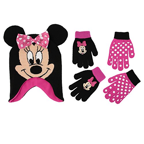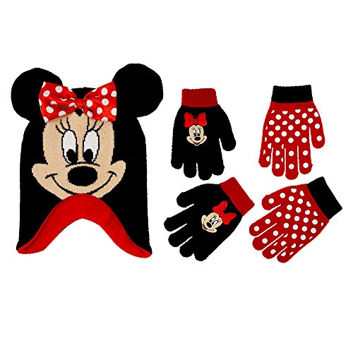 ★ 3-Piece cold weather set includes hat and two contrast color pairs of gloves or mittens featuring the sweet and lovable Minnie Mouse in polka dot design by Disney. Officially licensed Disney Minnie Mouse product.