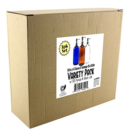 - VALUE 3-PACK: You get three 16-ounce capacity glass boston round bottles, 3 stainless steel coated pump tops, and 3 plain black lids for easy storage