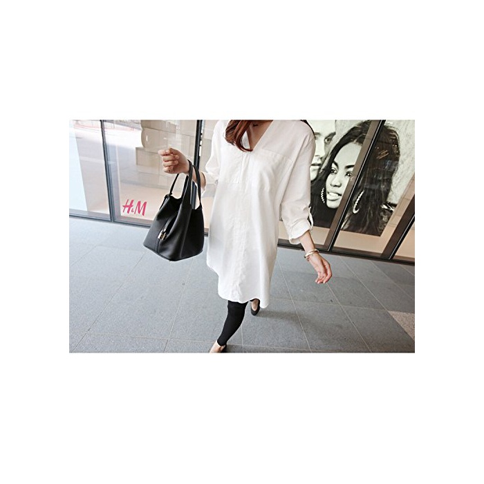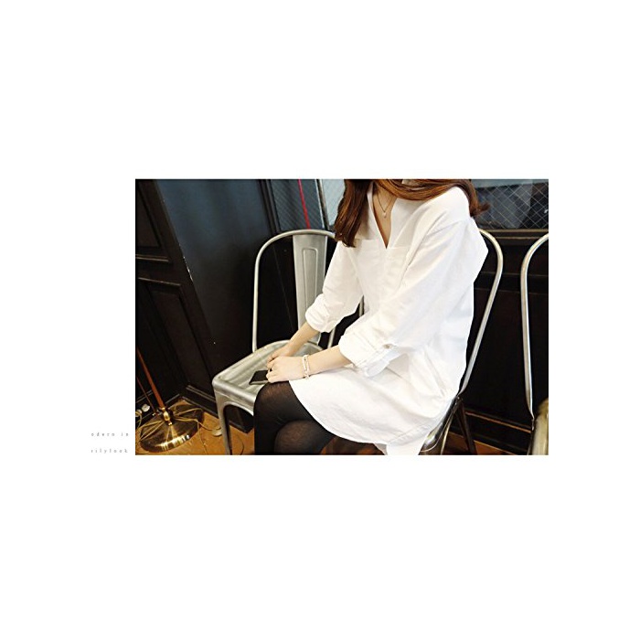 (《기에몬》) KIEMON 캐주얼 V넥 롱 키 셔츠 긴 소매 레이디스 톱스 코튼 블라우스