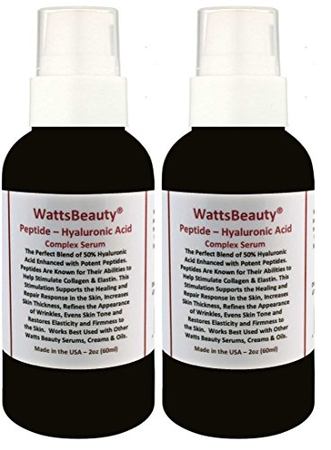 Studio : Watts Beauty Publisher : Watts Beauty Binding : Misc. Product Description The possible benefits of peptides in this concentrated serum are unlimited. Peptides are known for their ability to stimulate collagen and elastin. This stimulation may help to support the healing and repair response in the skin, increases skin thickness, refines the appearance of wrinkles, evens skin tone and texture, and restores elasticity and firmness to the skin. With efficient re-hydration via Hyaluronic Acid, this peptide serum is at the top of the market. Delivering quality ingredients to your skin via the best delivery medium on the market, hyaluronic acid - Expect Results... 0