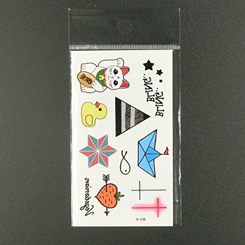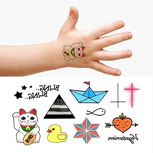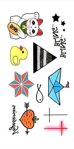 Oottati Small Cute Temporary Tattoo Duck Cross Paper Boat Lucky Cat Bling (2 Sheets)
