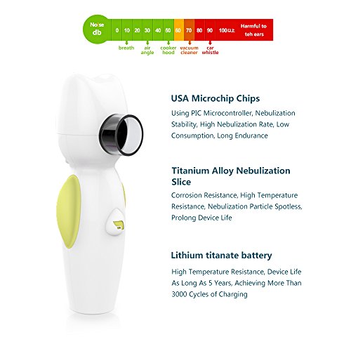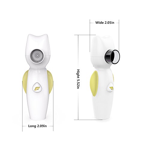 Please Note: Air Angel Nebulizer will automatic shut-off after each medication dose(10 mins). You don't need charge the battery again, just need to restart the nebulizer. The nebulizer can work for 7 times (10 mins per time) when you have charged the batteries fully (about 50 mins) .Normally,2 ~ 3 times therapy per day and 10mins per time is enough for kids. How to let nebulizer work Click the button 3 times in 2 secs, then it will work. It is designed for avoiding kids to power nebulizer on alone. How to paly music Long press the button when the nebulizer has already worked, music will play. Air Angel Nebulizer utilizing the Mesh Technology converts liquid medication into mist. Thus, the medicine can easily reach into the lungs of a patient when inhaled through the mouthpiece or a face mask, efficiently delivers solution medications for patients suffering from asthma, COPD or other respiratory conditions. Patients appreciate the small product size and powerful delivery that is comparable to table-top compressor nebulizer systems. Features: ● Lightweight and portable. ● Medical-grade material.● One-button operation. ● High-output fine particle. ● Low Power consumption, silent operation. ● Available to operate in virtually any position. ● Automatic shut-off after each medication dose (10 minutes use). ● Charging via micro USB cable to any 5v usb power adapter or plug it directly into your computer. What is included:● USB cable ● Mouth piece ● Pediatric mask ● Manual ● Certificate ● Warranty card ● Air Angel main machine 0 |