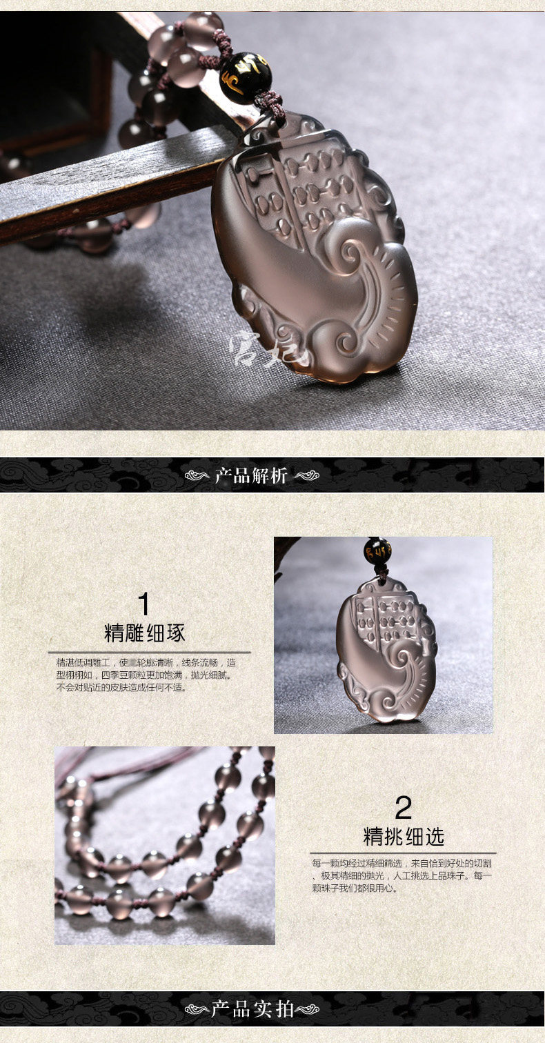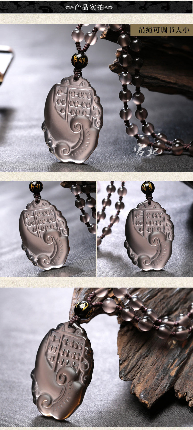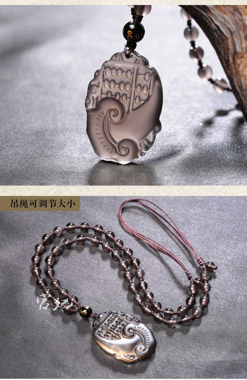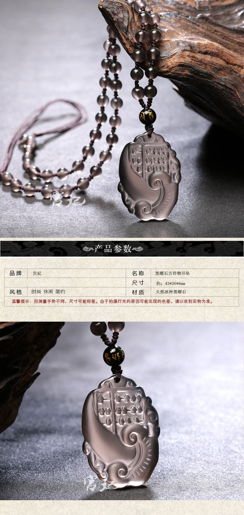 开光冰种黑曜石生肖兔吉祥物金符如意护身符吊坠