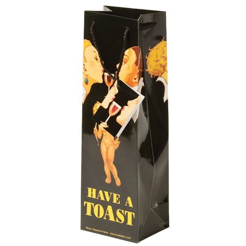 True by True Fabrications Have a Toast Paper Wine Gift Bag with Roped Handles - One Bag