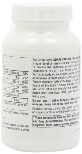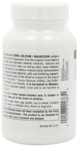ReleaseDate : 2017-10-04 Studio : Source Naturals Publisher : Source Naturals Binding : Health and Beauty Product Description Source Naturals Coral Calcium/Magnesium contains a higher level of magnesium than the original Coral Calcium to provide the important alkaline minerals, calcium and magnesium, in a 2:1 ratio, as well as other trace minerals. An initial study on an alkaline mineral blend demonstrated an increase in blood alkalinity (pH) and buffering capacity. Proper alkalinity (pH) of the blood is critical for the overall health of the body. Source Naturals Coral Calcium/Magnesium is harvested in Okinawa, Japan from fossilized (dead) coral and is not harmful to living coral. 0