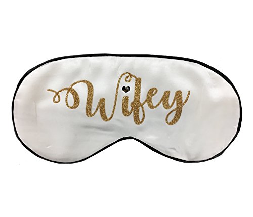 -. Feature : White and Black Trimmed Eye Mask Features Wifey in Gold Glitter P.R.Int / Luxurious soft silk and breathable / Adjustable elastic back / Perfect Bridal Shower or Bachelorette Party Gift / Great for Honeymoon Travel