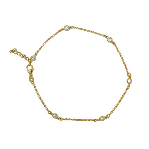-. Title : Gold-Tone CZs Studded Chain Anklet