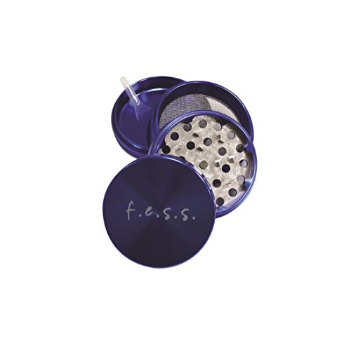 F.e.s.s. Fess Grinders Premium Large 2.5 Inch Herb Grinder with Pollen Catcher - 4 Piece Aluminum (Blue)