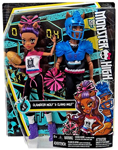 -. Binding : Toy -. Brand : Mattel Toys -. EAN : 0887961405972 -. Feature : Get in the game with this Monster High play set that includes two dolls together! -. IsAdultProduct : 0 -. Label : Mattel Toys -. Manufacturer : Mattel Toys -. ProductGroup : Toy -. ProductTypeName : TOYS_AND_GAMES -. Publisher : Mattel Toys -. Studio : Mattel Toys -. Title : Monster High Winning Werewolves Clawdeen Wolf and Clawd Wolf -. UPC : 887961405972