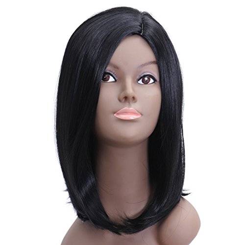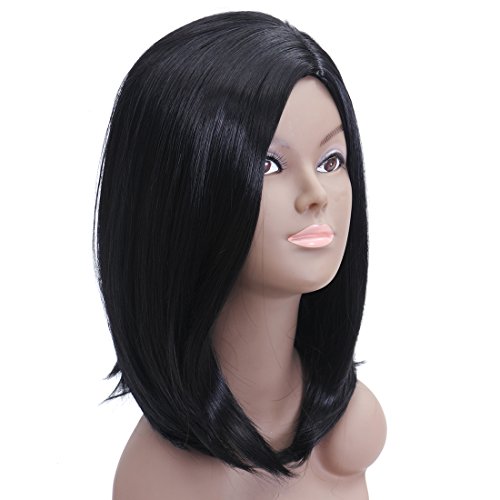 Pengruizhi 16" Bob Wig Short Straight Black Wig for Women Synthetic Fiber Party Wig With Free Wig Cap