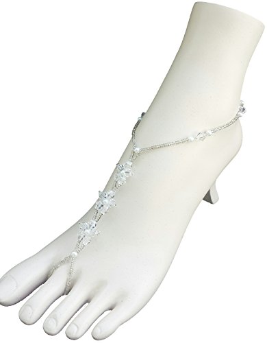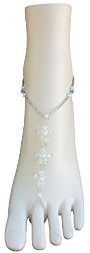 -. Title : Wedding Barefoot Sandals Crystal Flowers with Pearl Accents