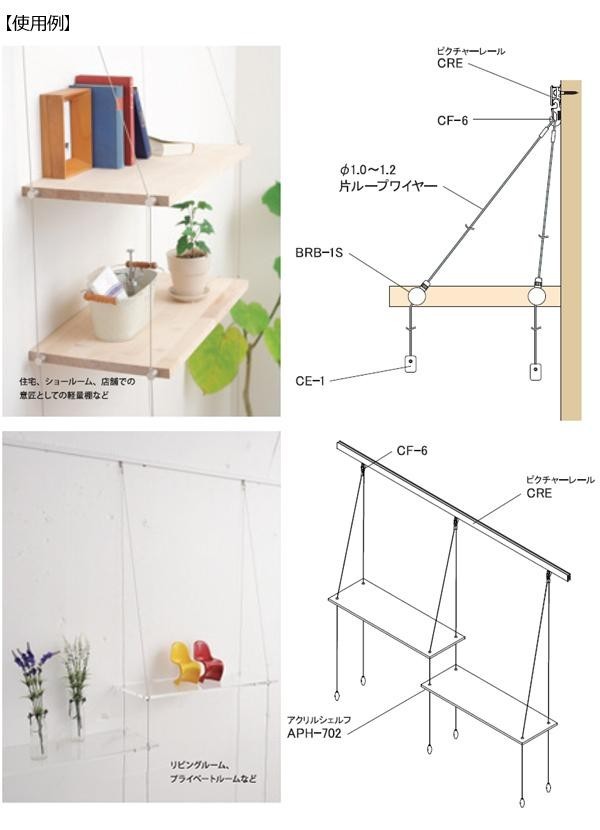 | 別売の『アールクレール 10kgタイプ(CRE)』専用のフック型レールアタッチメントです。ループワイヤー(別売)を引っ掛けて、10kg以内でご使用下さい。外れ防止付きです。 |