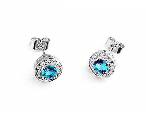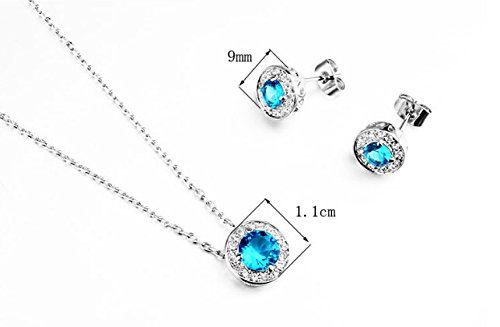 -. Title : Fashion Jewelry Set, Pendant Necklace And Studs, 18K White Gold Plated, Round Blue Crystal