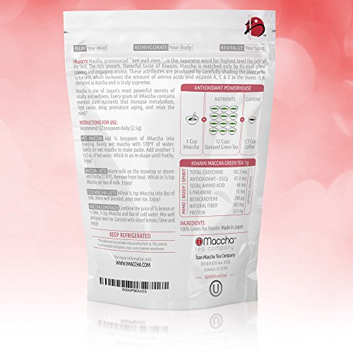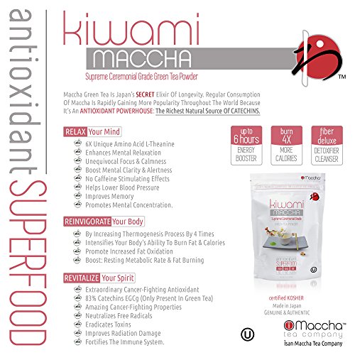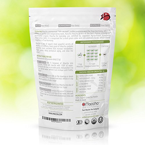 -. Binding : Grocery -. Brand : iMaccha -. Feature : ➤ TRUTH: WE ARE NOT CREATED EQUAL. KAZUMA green tea has been independently tested and certified, it's the most premium organic quality on the market. If It's Not iMaccha, It's Not Real Matcha At All! / ➤ INCREASE METABOLIC RATE & LEAN BODY MASS. KAZUMA green tea scored 1700 TE/g (ORAC); rich in antioxidant components known to boost metabolism, eliminate free radicals & slow the signs of aging. / ➤ YOUR SECRET WEAPON TO RELAX, REINVIGORATE & REVITALIZE YOUR BODY. KAZUMA green tea has 7X's the unique amino acid L-Theanine, known to promote relaxation without sedation & reduce anxiety. / ➤ NATURALLY ERADICATE TOXINS FROM YOUR BODY. KAZUMA green tea contains 83% of the most powerful antioxidant that exist in nature; catechin EGCg which has proven to have therapeutic properties. / ➤ HAPPY, SEXY, LEANER YOU. The perfect trifecta pre-workout drink; consume KAZUMA green tea to increase the thermogenesis process from 8-10% to 35-43%, thus increasing your body's fat-burning 4X's faster than average. Get The Body You Always Wanted - Click "Add to Cart" Now! -. Label : Īsan Maccha Tea Company -. Manufacturer : Īsan Maccha Tea Company -. ProductGroup : Grocery -. ProductTypeName : GROCERY -. Publisher : Īsan Maccha Tea Company -. Size : 100 grams -. Studio : Īsan Maccha Tea Company -. Title : iMaccha, Matcha Green Tea Powder, Size 100g (3.5oz), 100% USDA Certified Organic Japanese Ceremonial Grade Matcha Powder, Dr Oz Recommended Supplements for All Day Natural Energy, Juice Cleanse & Greens Detox, An Amazing Anti-Aging Superfood, Treat Yourself To A Green Tea Latte Or Smoothie Today