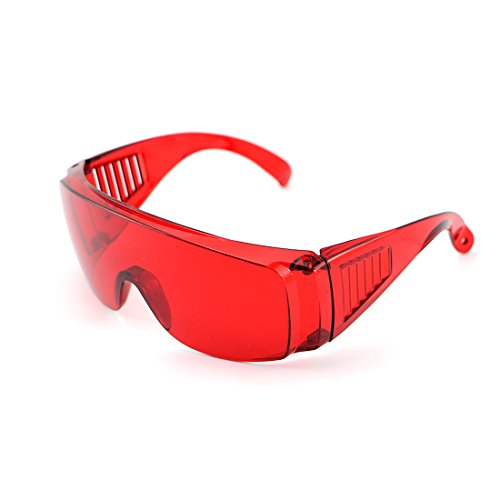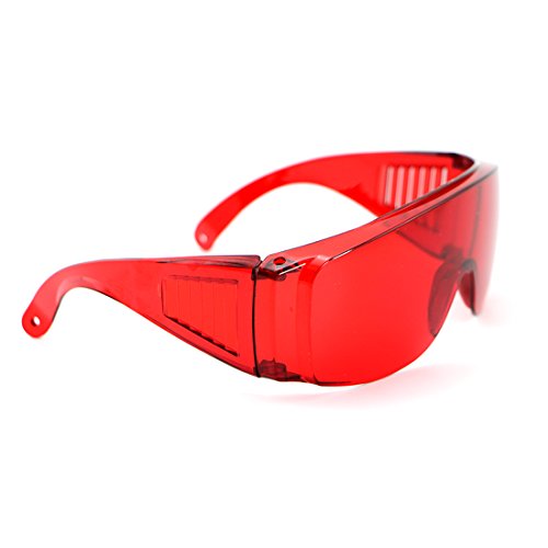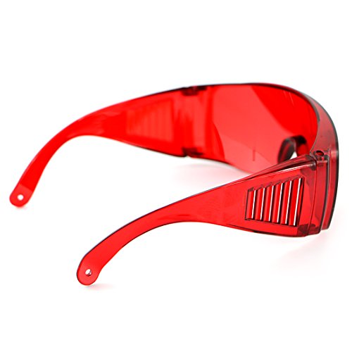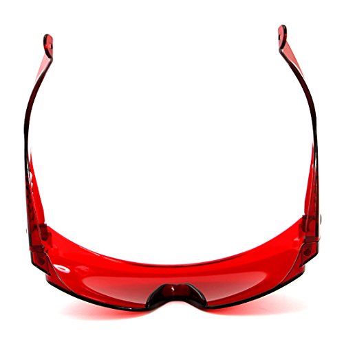 -. Feature : Safety Glasses for laser exposure / Large frame, can be worn over other glasses / Fashionable and practical, portable, reliable and comfortable to wear / Size: 6.3 inch, Color: Red Glasses, Material: PVC / Durable construction for long wear life