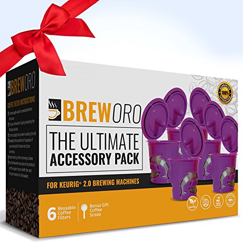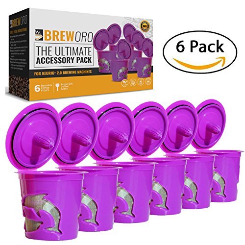 6 REUSABLE K-CUPS BY BREWORO - REFILLABLE K CUP COFFEE FILTERS FOR KEURIG 2.0, K200, K250, K300, K350, K400, K450, K460, K500, K550, K560 AND 1.0 BREWERS