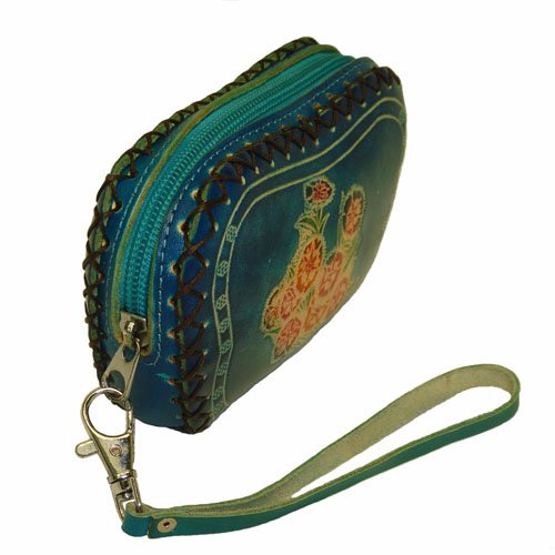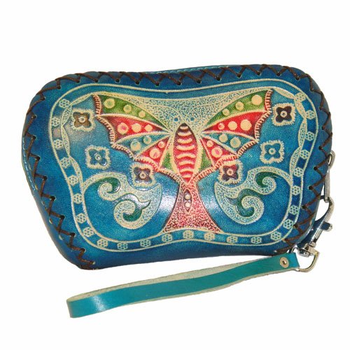 -. Brand : BPLeathercraft -. Department : womens -. Feature : Use the choice genuine, special-tanned cowhide. / Made by the special 3D leather produce techniques. / 100% Hand-Made by our master leather craftsmen / A great ideal for a unique top grade gift for all seasons. / Not sale in any retail store!! -. ProductGroup : Apparel -. ProductTypeName : HANDBAG -. Title : Designer Genuine Leather Wristlet Purse, Blue Base with Butterfly and Flower Pattern