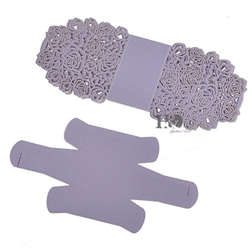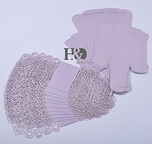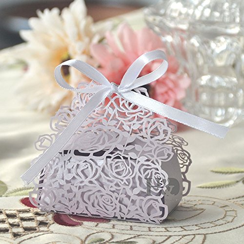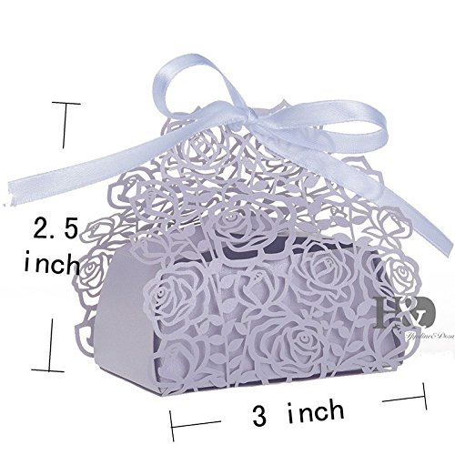 Saitec 50 Pack Laser Cut Rose Bride and Groom Candy Gift Box With Ribbon Wedding Favor Boxes Gift box Candy box (Light Purple)