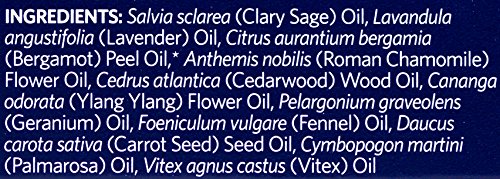 - Feature : Features a blend of Clary Sage, Lavender, Bergamot, Roman Chamomile, Cedarwood, Ylang Ylang, Geranium, Fennel, Palmarosa, Carrot Seed, and Vitex essential oils / Helps balance hormones / Provides temporary respite from cramps, hot flashes, and emotional swings