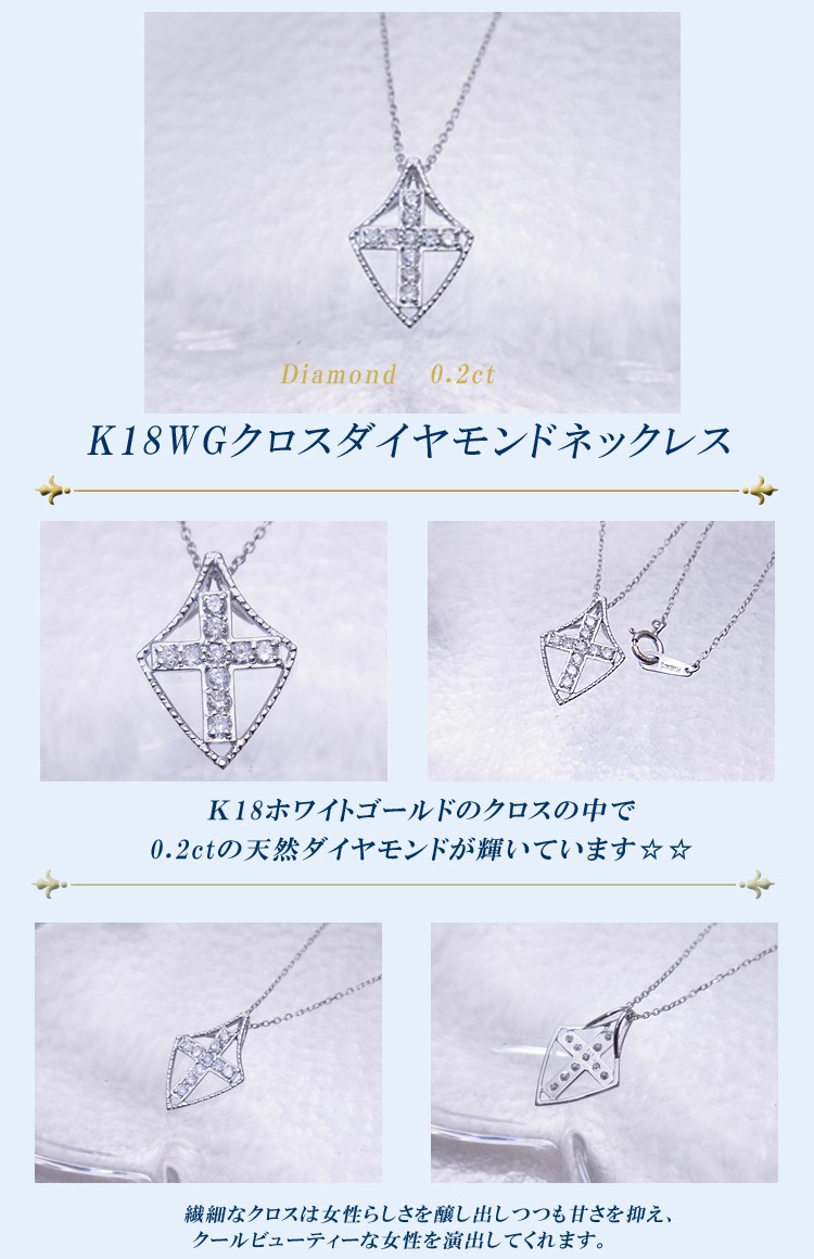 ■商品説明 K18ホワイトゴールドのクロスの中で0.2ct天然ダイヤモンドが輝いています。