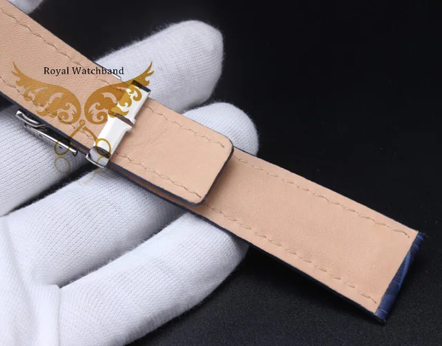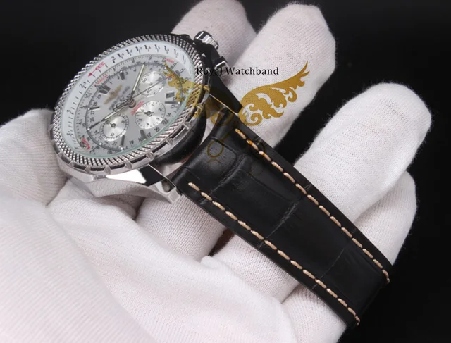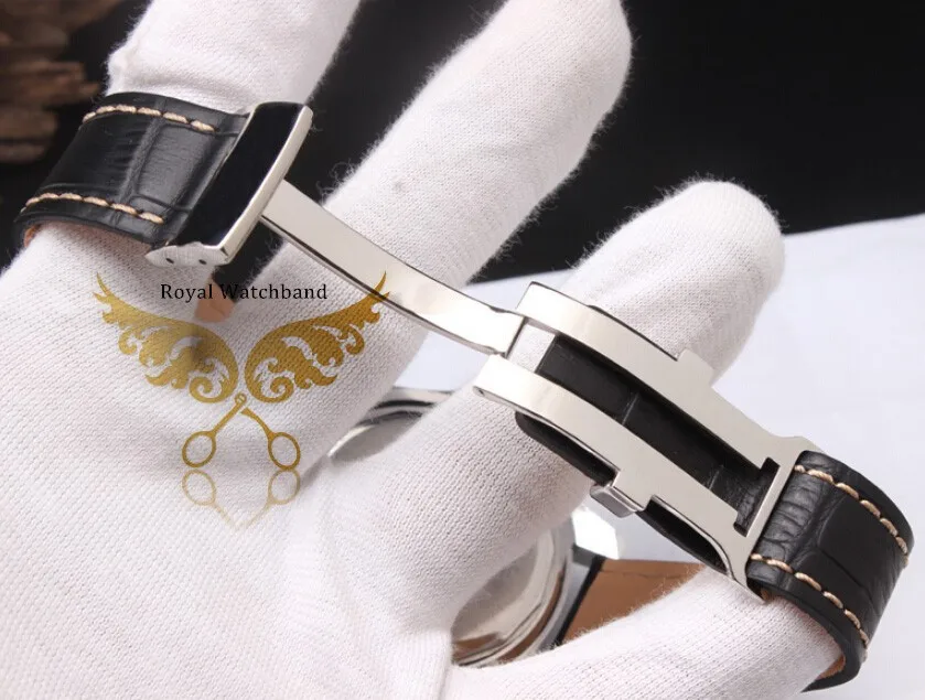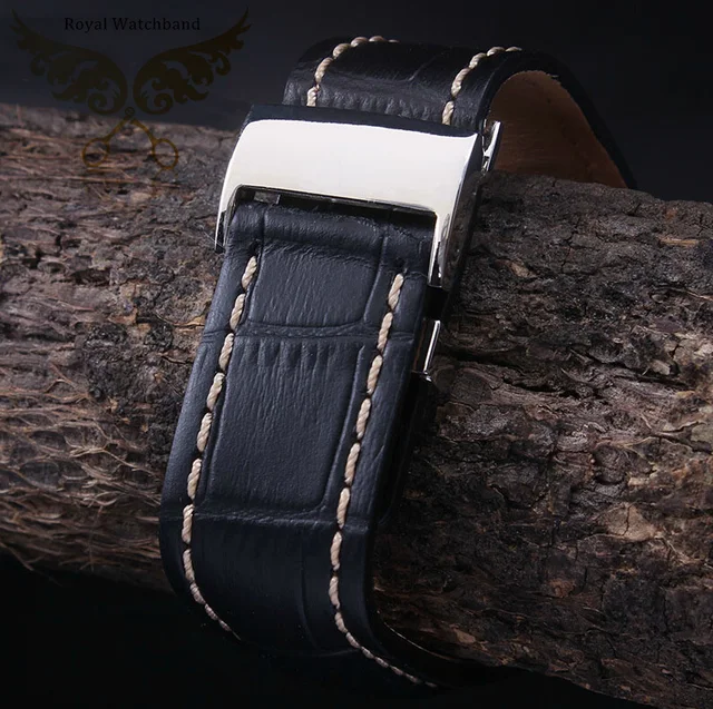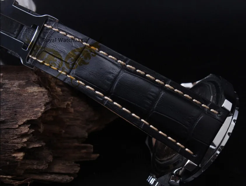 | [해외]블랙 시계는 밴드 24mm 22mm 악어 패턴 진짜 가죽으로 된 시계 끈 실버 광택 depolyment 버클 버클 |